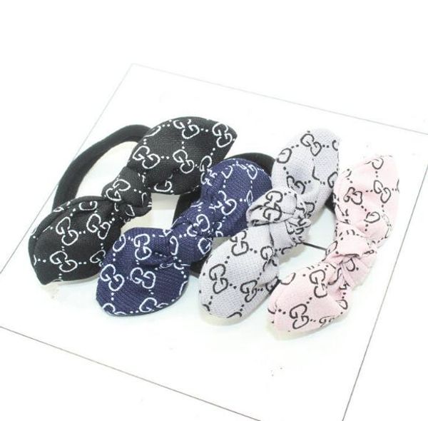 2019 Korea Styles Handmade Bowknot Hair Rope Brand Letters Logo Print Hair Ties Elastic Hair Rubber Bands Women Girl Hairband Jewelry Accessory From