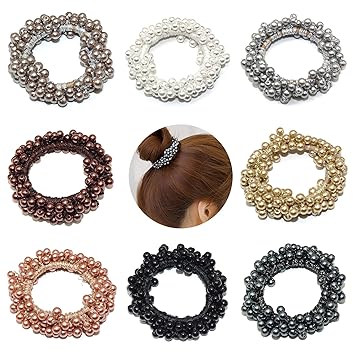 Beautyflier Pack Of 8 Pearl Elastics Hair Ties Ring Rope Scrunchie Hair Bands Ponytail Holder For Women Or Girls Hair Accessories