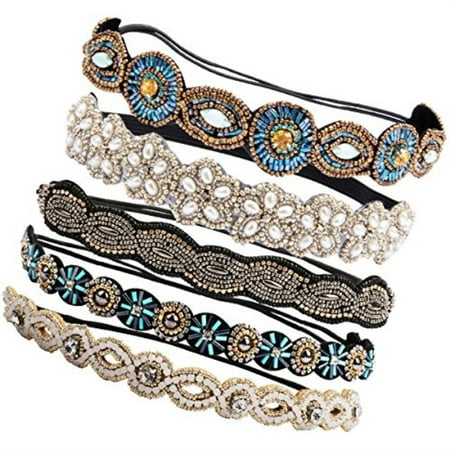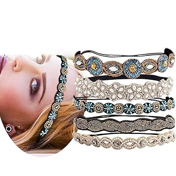 Ondder 5 Pieces Rhinestone Beads Elastic Headband Handmade